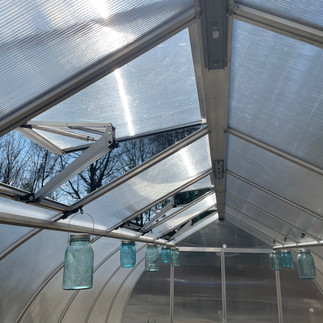 I’ve also added functional workspaces—tables for planting and storage—and automated the climate as much as possible. Temperature-sensitive vents open and close on their own using pistons that respond to the air, keeping conditions stable without constant oversight.